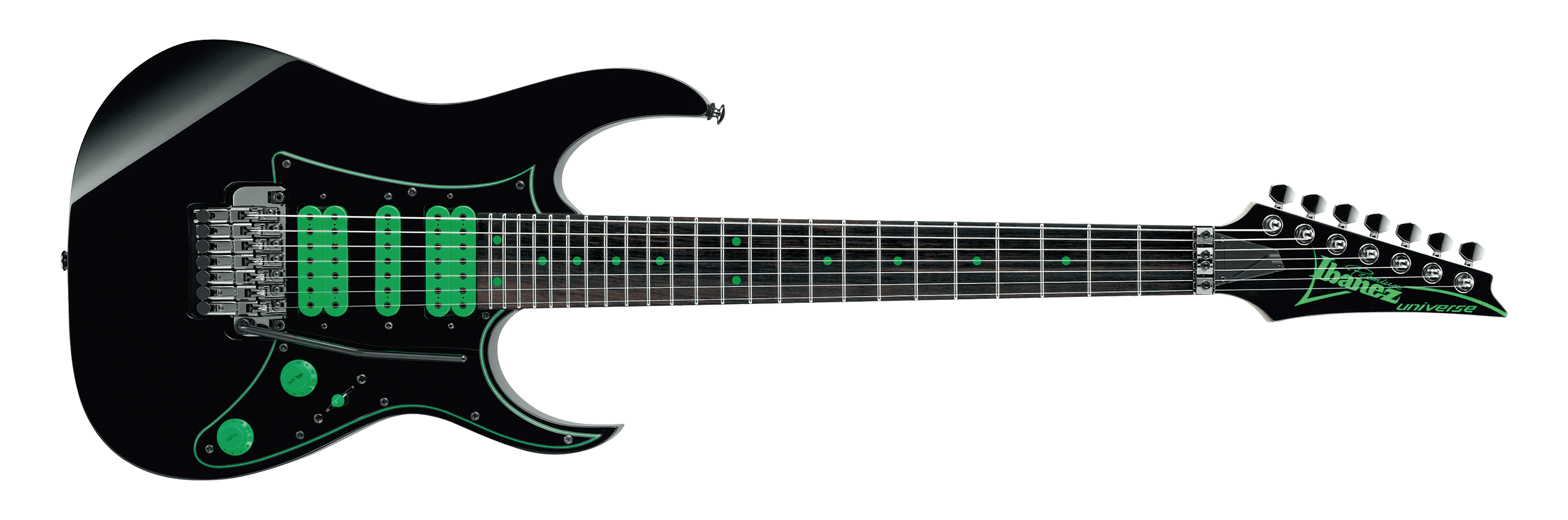 Vai's signature instruments include the Ibanez JEM guitar, which he designed in 1985 with first-of-its-kind features including the floating tremolo and the monkey grip. The JEM is now one of the longest running, most successful signature series guitars in history, and for over a decade its sister model-the RG-is second in worldwide sales only to the Fender Stratocaster. Also for Ibanez, Vai designed "The Universe," the first commercial 7-string electric guitar. This instrument inspired a revolutionary metal subculture that started in the mid '90s. Among his many other innovative collaborations with equipment manufacturers, he designed the Steve Vai Legacy V3 series of all-tube amplifiers with Carvin Corporation.